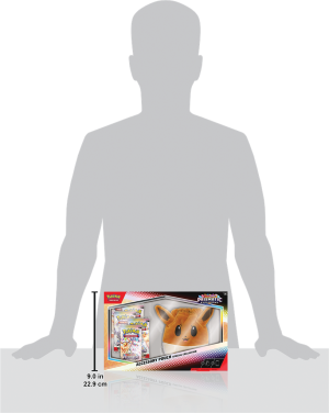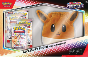 Cute. fluffy. and full of charm. Eevee is sure to bring a smile to everyone she meets! With the soft accessory pouch in this collection. you can take Eevee’s enthusiasm with you wherever you go. from Pokémon League to a day on the town. Eevee’s large ears stand upright for a unique look. and the lanyard at the top keeps your coins and other accessories safe. Also included are booster packs of the special Scarlet & Violet Prismatic Evolutions expansion. for even more Pokémon fun!