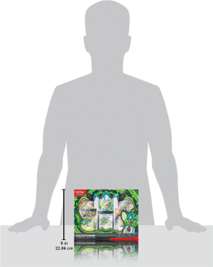 The Legendary Pokémon Ogrepon is a cute but ferocious force to be reckoned with. and Terastallizing takes his power to even greater heights! This collection lets you team up with Teal Mask Ogrepon as a Tera Pokémon ex. along with another version of Teal Mask Ogrepon and the Ogre’s Mask Trainer card as special foil cards. A magnetic card protector. set of sleeves. and a bunch of booster packs will make your new friendship with Ogrepon even more fun!
