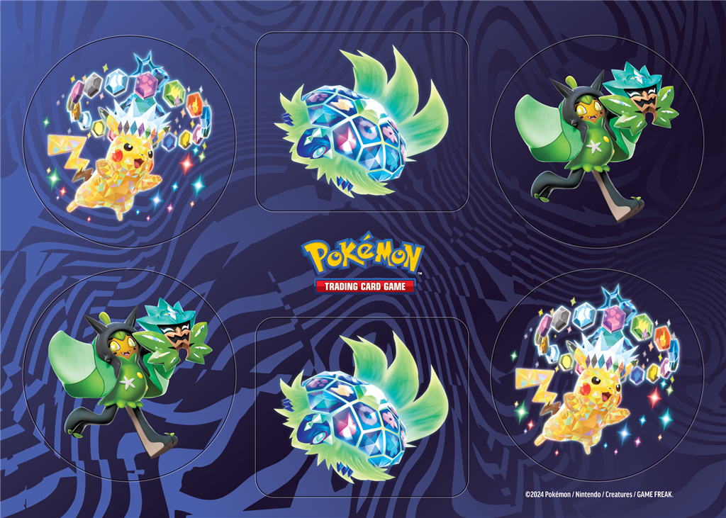 3 foil kaarten met Pikachu. Dipplin en Teal Mask Ogerpon